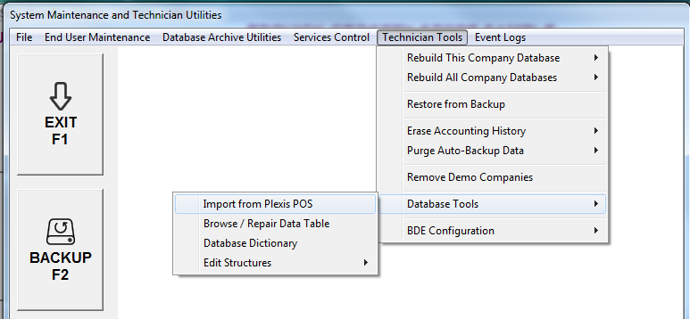 8. Select Database Tools, Import from Plexis POS